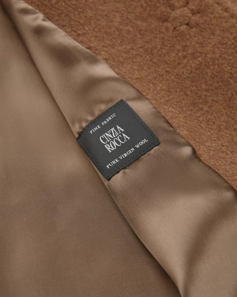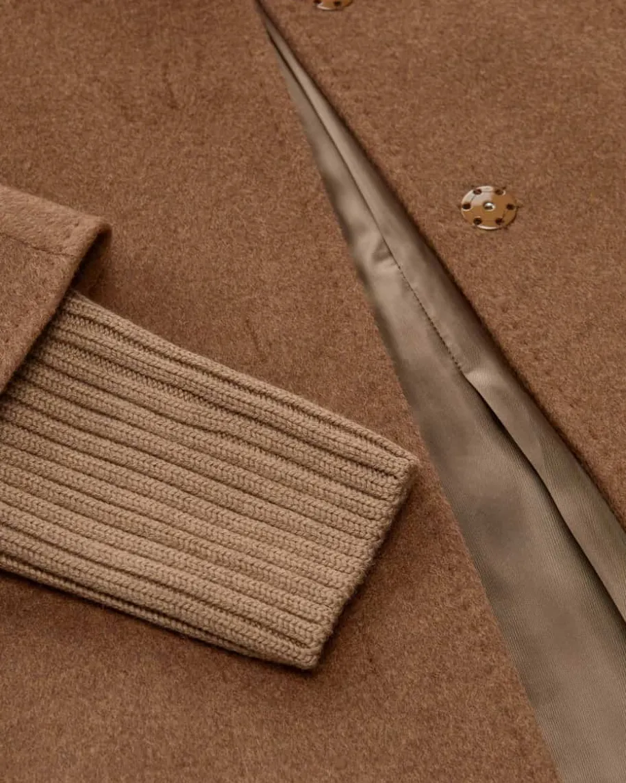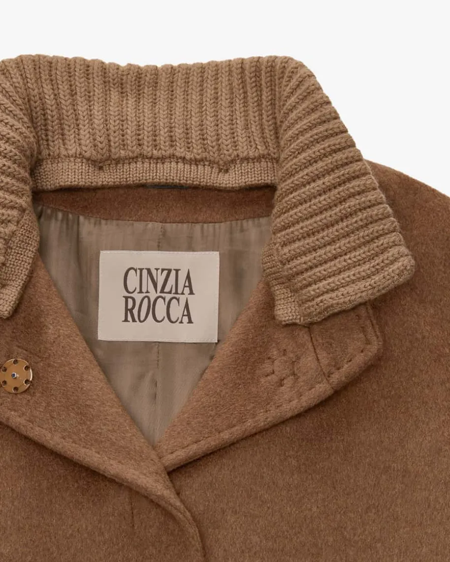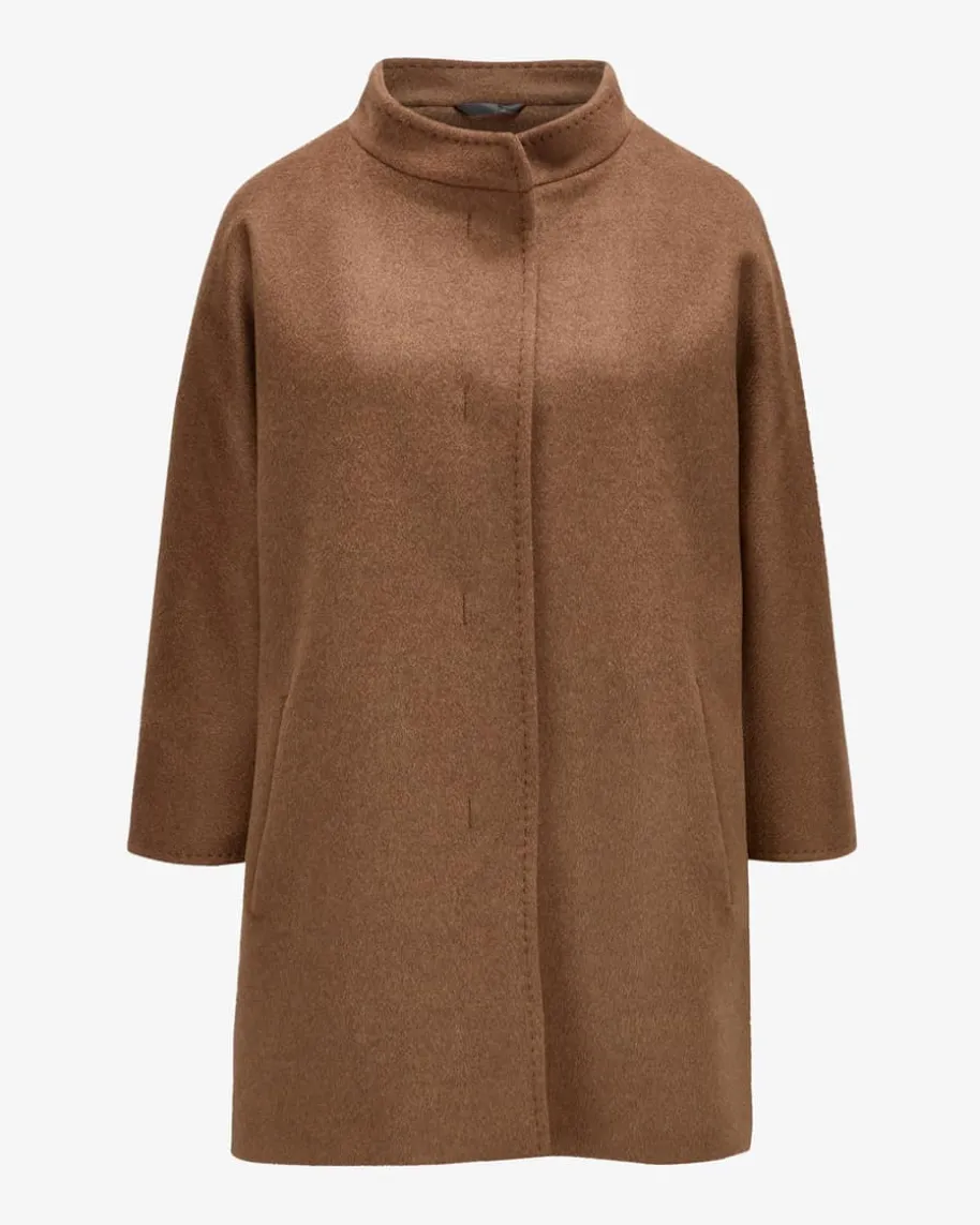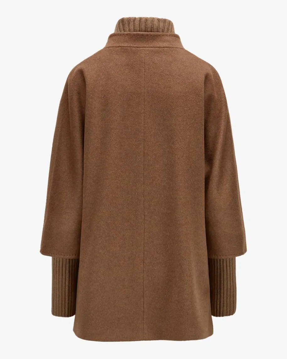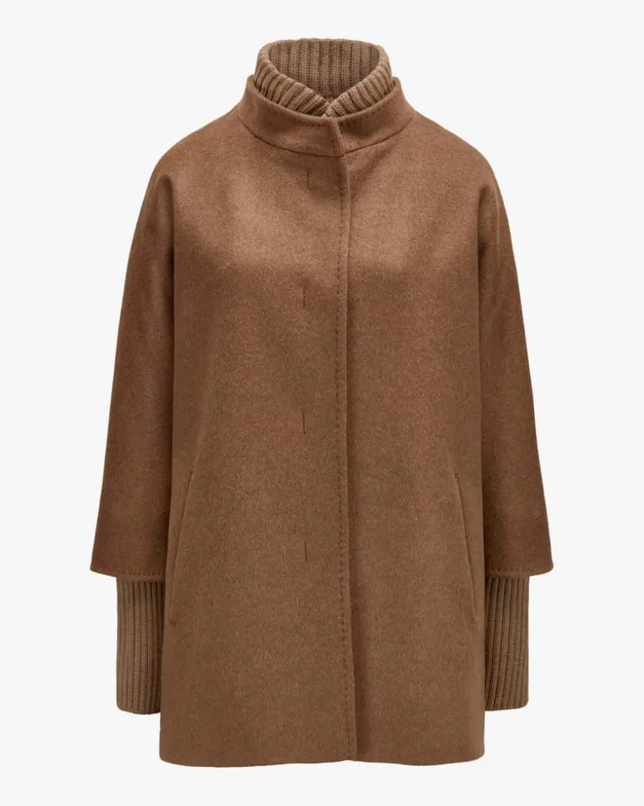 Wollmantel für Damen von Cinzia Rocca in Hazel. Das Modell begeistert durch diehochwertige Schurwoll-Verarbeitung sowie der legeren Passform und sorgt so füreinen modischen Übergangslook, während der Stehkragen sowie die Rippstrick-Details dem Kurzmantel einen modernen Touch verleihen.