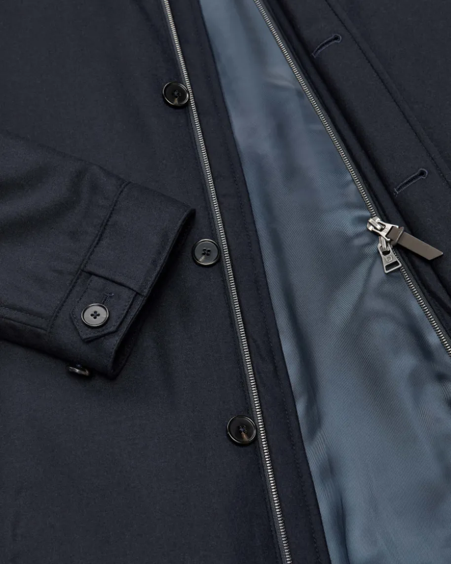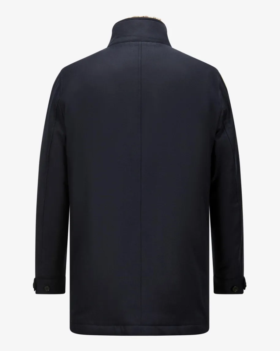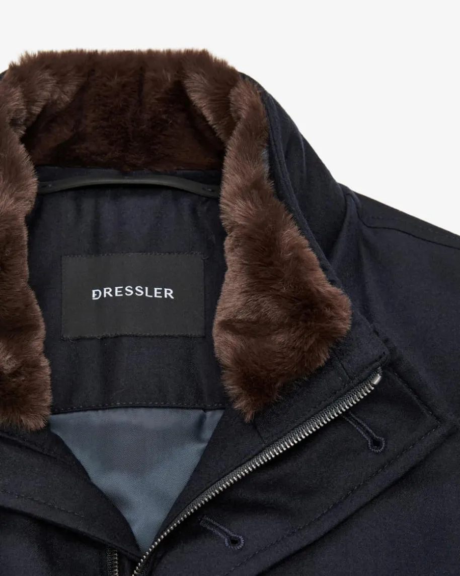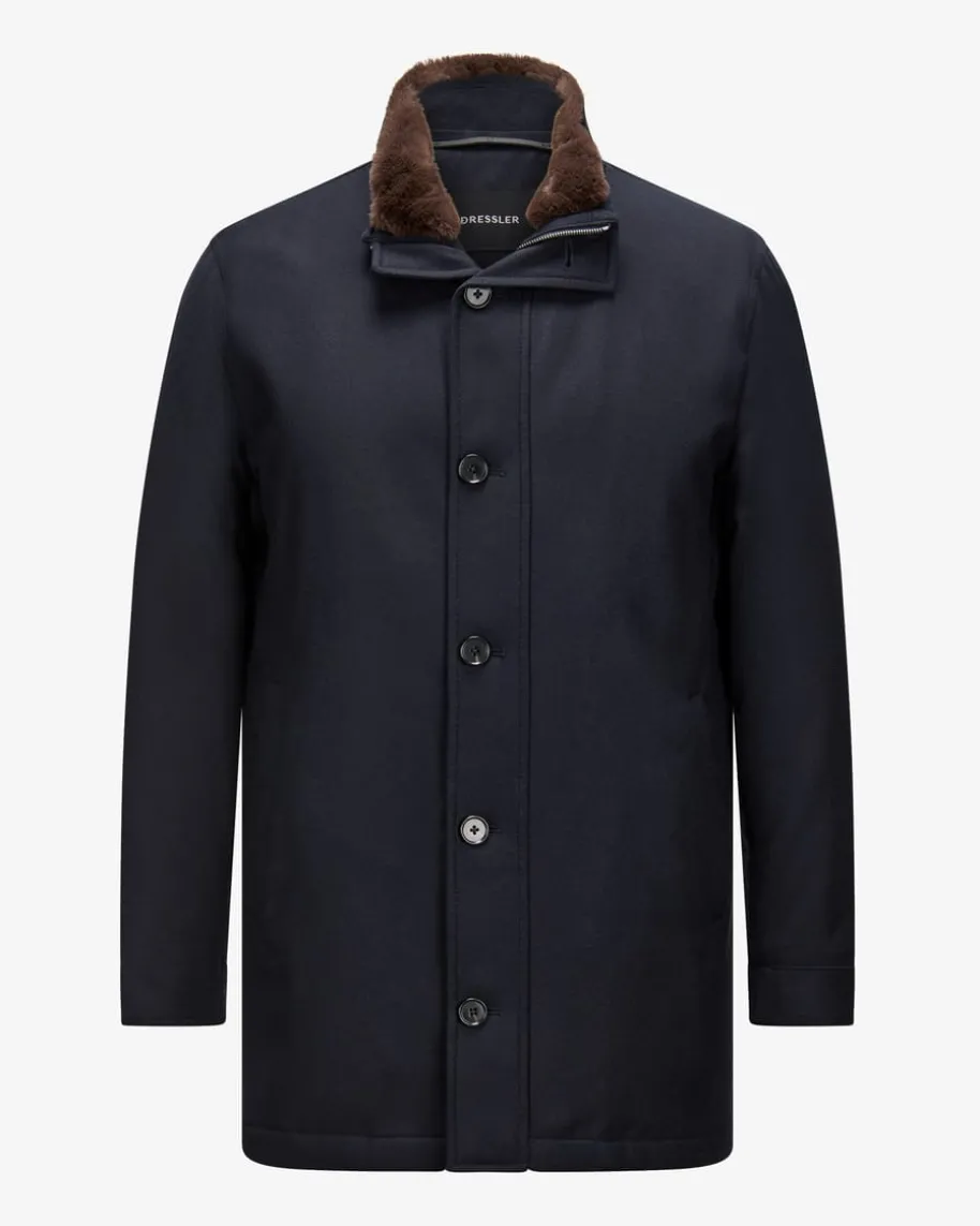 Wollmantel für Herren von Dressler in Navy. Dank klassischer Details avanciertdas gerade geschnittene Modell zum zeitlos eleganten Begleiter mit sportivemTouch. Zugleich überzeugt der Kurz-Mantel durch die hochwertige Woll-Qualitätund dem abnehmbaren Fell-Kragen in edler Aufmachung mit angenehmenTragemomenten.