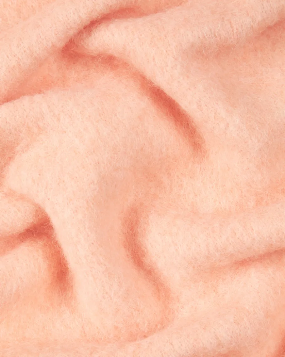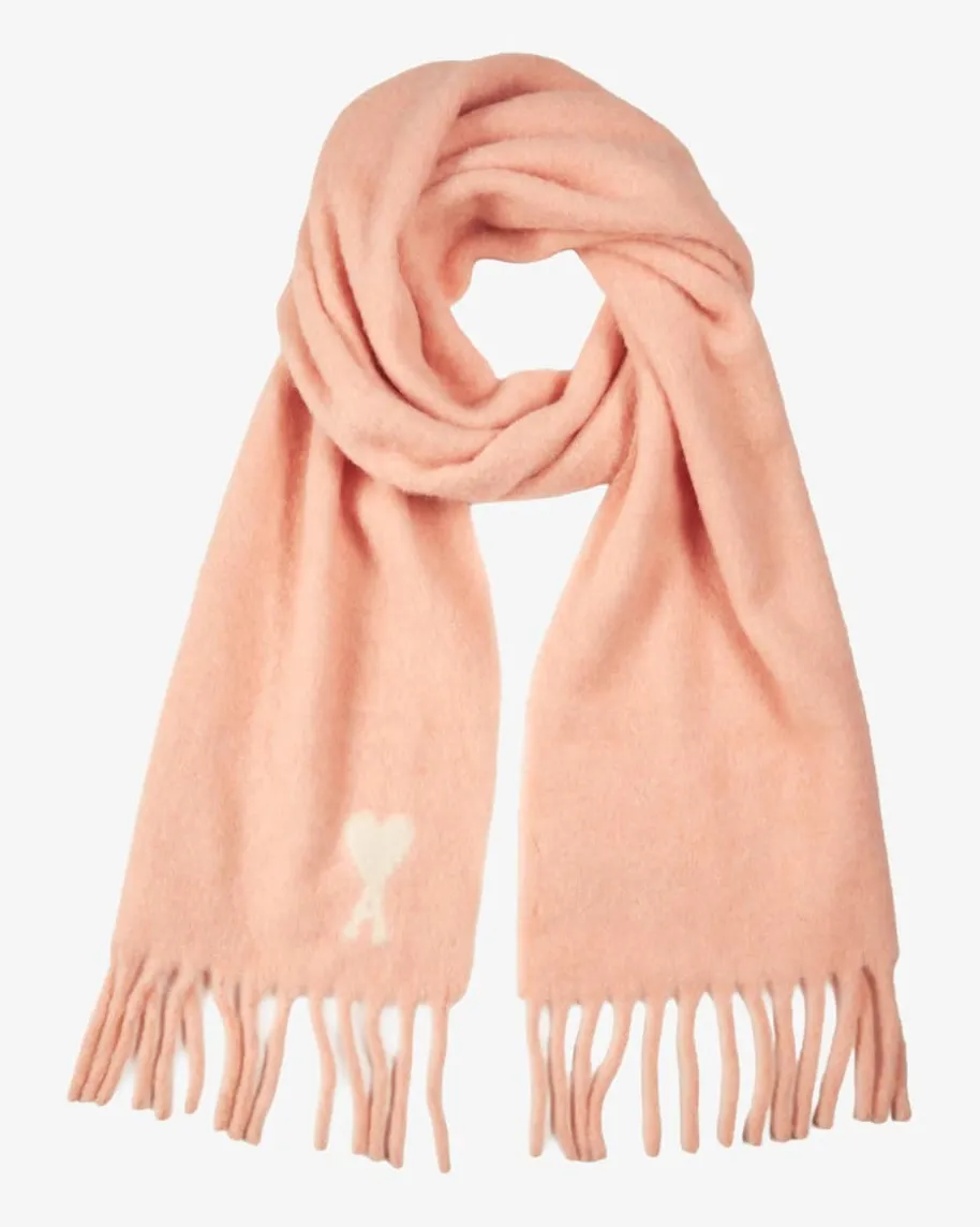 Wollschal für Herren von Ami Paris in Lachs und Weiß. Dieses Modell punktet mitweichem Alpakawoll-Mix, während die Fransen und die labeltypische herzförmigeLogo-Intarsie stilvolle Akzente setzen.