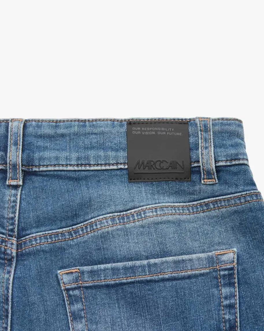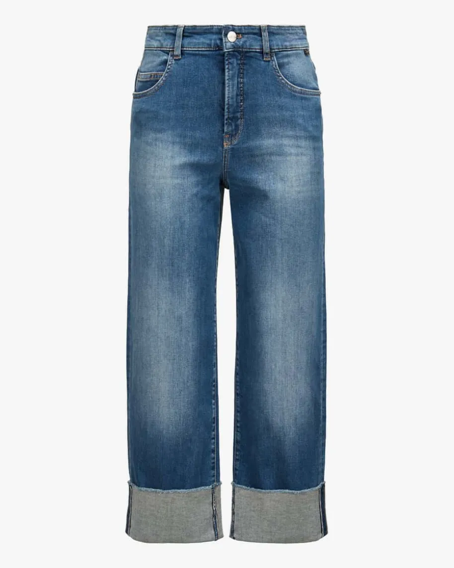 Wukari 7/8-Jeans High Waist Wide Fit für Damen von Marc Cain in Blau. Marc Cainist eine deutsche Premium-Modemarke, die seit über 50 Jahren moderne,selbstbewusste Frauen mit hochwertigen Materialien und außergewöhnlichen Printsbegeistert. Auch dieses Modell punktet dank der weiten Passform in stilvollerAufmachung, während der modische Washed-Look sowie die breiten umgeschlagenenBeinenden dem Gesamtbild den letzten Schliff verleihen.