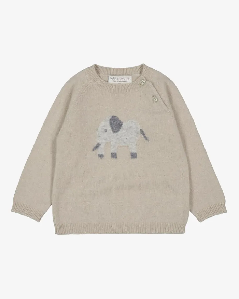 Elefant Cashmere-Pullover für Babys von Papa Lobster in Beige.Das melierte Modell besticht dank der hochwertigen Cashmere-Qualität mitbesonders angenehmen Tragemomenten, während die Elefant-Figur besondersniedliche Akzente setzt. Zudem ermöglicht die Knopfleiste an der Schulter einleichtes An- und Ausziehen.