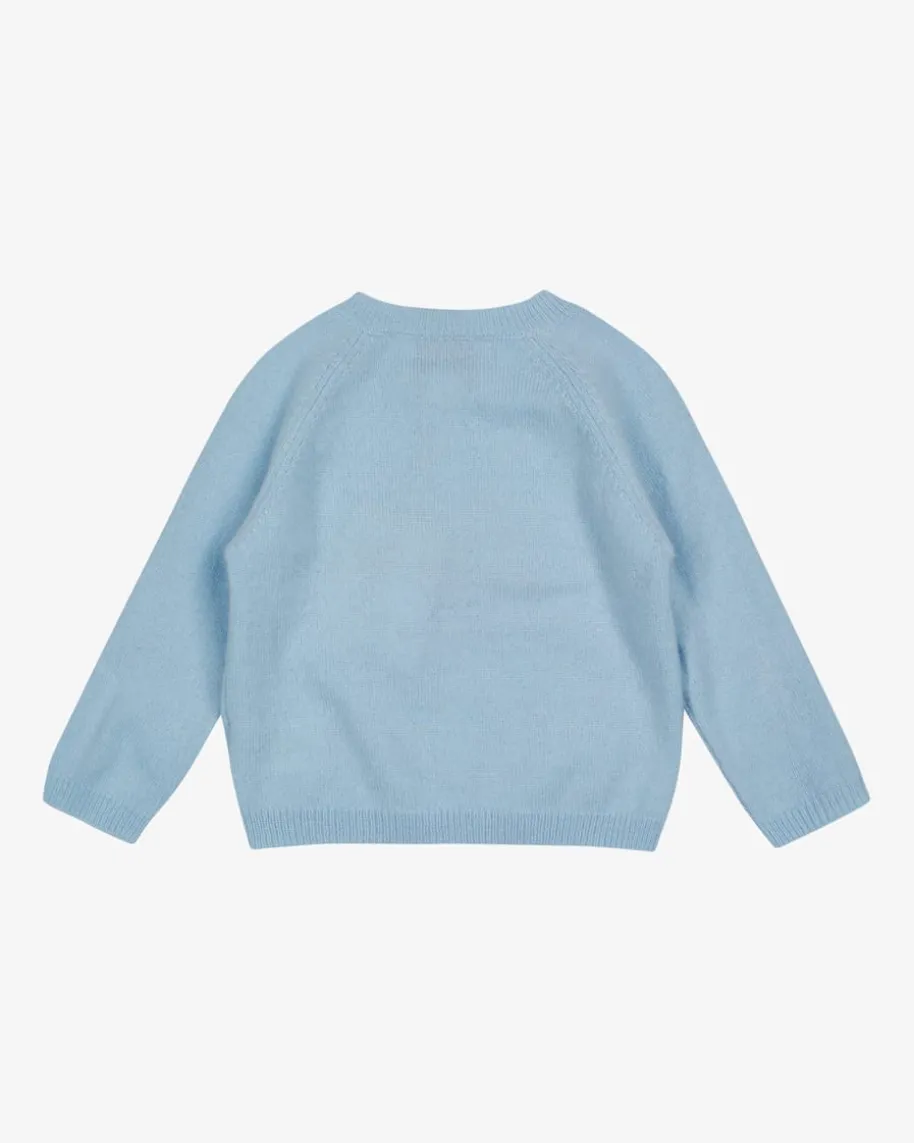Elefant Cashmere-Pullover für Babys von Papa Lobster in Hellblau und Grau.Das melierte Modell besticht dank der hochwertigen Cashmere-Qualität mitbesonders angenehmen Tragemomenten, während die Elefant-Figur besondersniedliche Akzente setzt. Zudem ermöglicht die Knopfleiste an der Schulter einleichtes An- und Ausziehen.