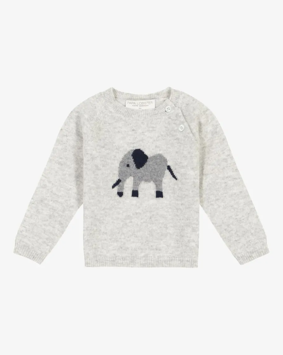 Elefant Cashmere-Pullover für Babys von Papa Lobster in Hellgrau, Grau und Navy.Das melierte Modell besticht dank der hochwertigen Cashmere-Qualität mitbesonders angenehmen Tragemomenten, während die Elefant-Figur besondersniedliche Akzente setzt. Zudem ermöglicht die Knopfleiste an der Schulter einleichtes An- und Ausziehen.