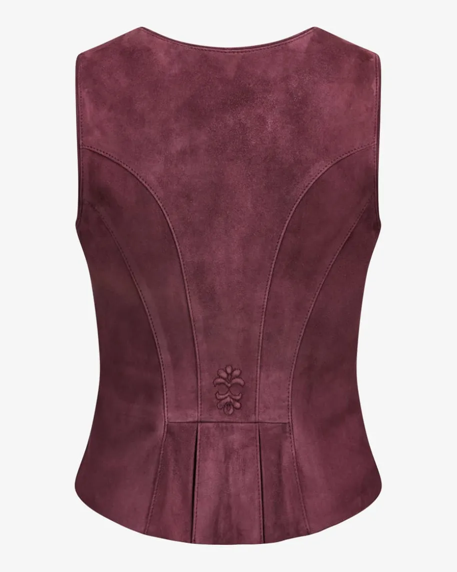 Linderhof Trachten-Ledermieder für Damen von Meindl in Dark Cherry. DasTraditionsunternehmen Meindl steht seit Jahrzehnten für traditionelle Handarbeitund höchste Qualität. Auch dieses exklusiv für LODENFREY entworfene Modell aushochwertigem Ziegenleder überzeugt mit taillierter Passform und weicherOberflächen-Verarbeitung. Handgemachte Silberknöpfe und feine Zierstickereienrunden den Trachten-Look gekonnt ab.