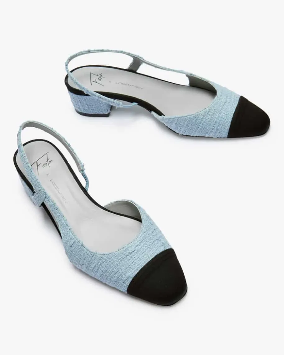 Rosette Slingback-Pumps für Damen von Festa in Hellblau und Schwarz. DiesesModell besticht durch seine besondere Material-Kombination, die für einenstilvollen Touch sorgt. Zugleich kreieren der dezente Blockabsatz sowie diemodernen Slingback-Riemen einen femininen Schuh mit hohem Tragekomfort.