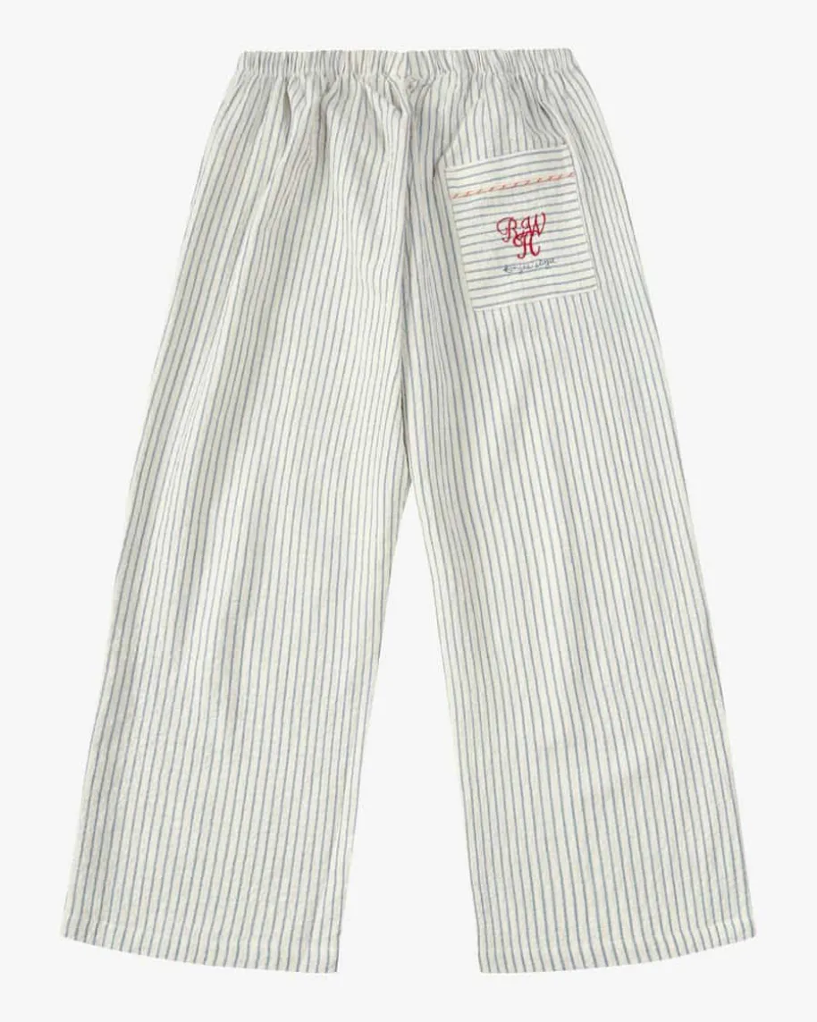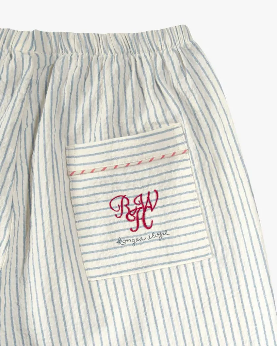 Duo Hose für Jungen von Konges Slojd in Creme, Blau und Rot. Das Modell aus derRosie Huntington-Whiteley-Kollektion überzeugt mit modischer Seersucker-Qualität, die durch das kreative Streifen-Dessin gekonnt in Szene gesetzt wird.Die feine Stickerei auf der Gesäßtasche rundet den Look zusammen mit der feinenPaspelierung stilvoll ab.