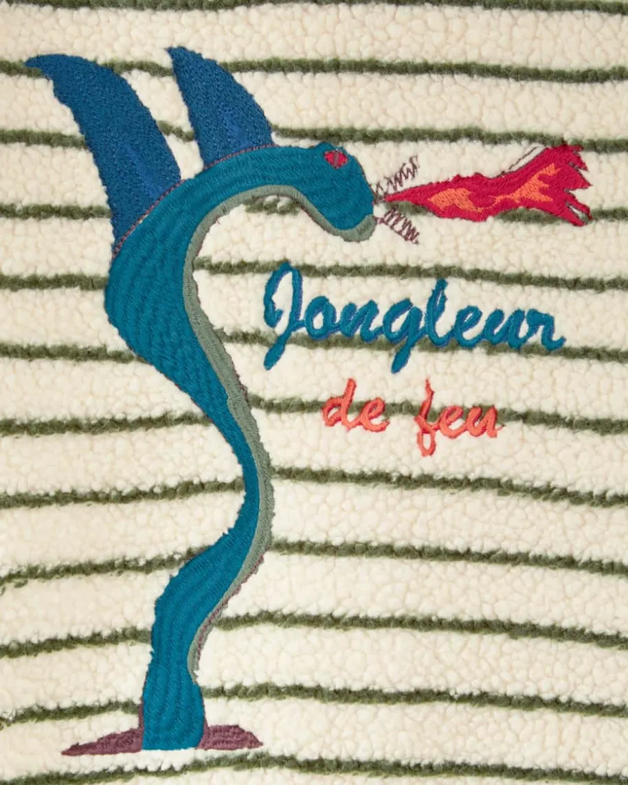 Jacke für Jungen von Konges Slojd in Creme und Flaschengrün. Das Modell aus derRosie Huntington-Whiteley-Kollektion präsentiert sich mit klassischem Streifen-Dessin, das durch die kuschelige Plüsch-Qualität modisch in Szene gesetzt wird.Die Drachen-Stickereien auf Vorder- und Rückseite vollenden den Lookeinzigartig.