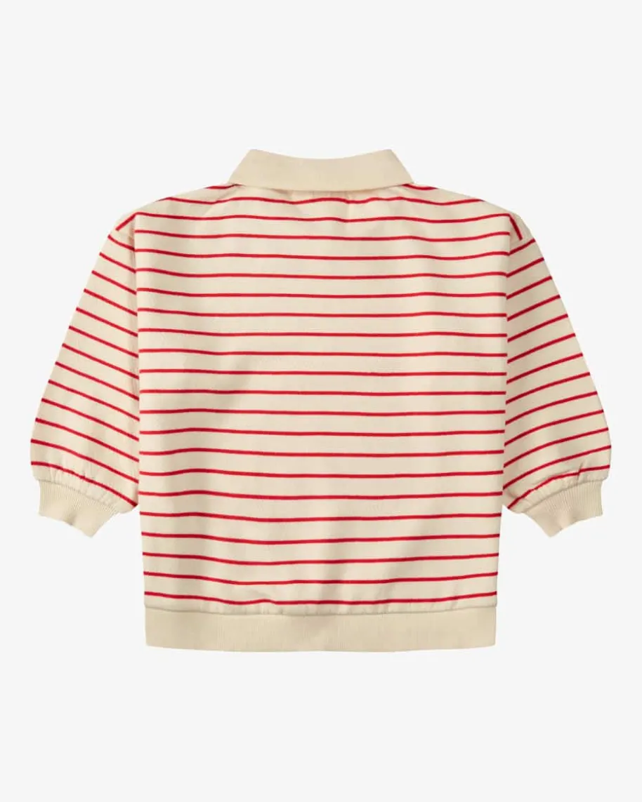 Largo Sweatshirt für Kinder von Konges Slojd in Creme und Rot. Das Modell ausder Rosie Huntington-Whiteley-Kollektion präsentiert sich mit klassischemStreifen-Dessin sowie sportivem Polo-Kragen und avanciert so zum modischenHighlight, während die weiche Baumwoll-Qualität Ihrem Liebling einen angenehmenTragekomfort bietet.