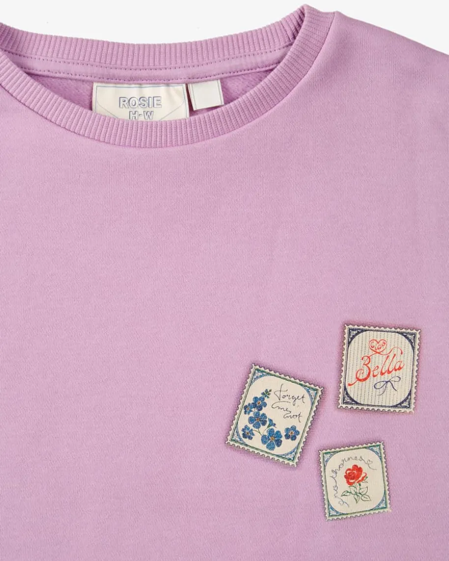 Lettre Sweatshirt für Mädchen von Konges Slojd in Flieder. Das Modell aus derRosie Huntington-Whiteley-Kollektion punktet mit angenehmer Material-Qualitätund legerer Passform. Der niedliche Briefmarken-Print rundet den Look gekonntab.