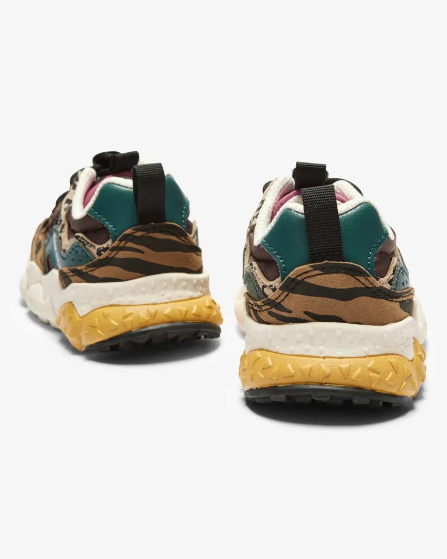 Yamano 3 Sneaker für Kinder von Flower Mountain for Naturino in Braun, Sand undPetrol. Das vegane Modell begeistert mit modischem Chunky-Design und gekonntemMaterial-Mix mit Animal-Print Details, während der One Pull-Verschluss für einleichtes An- und Ausziehen sorgt.