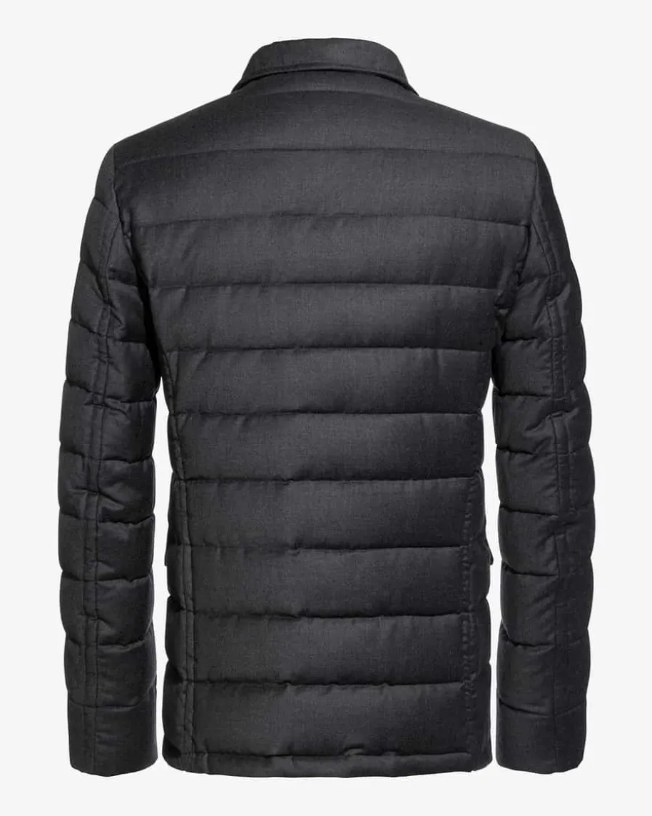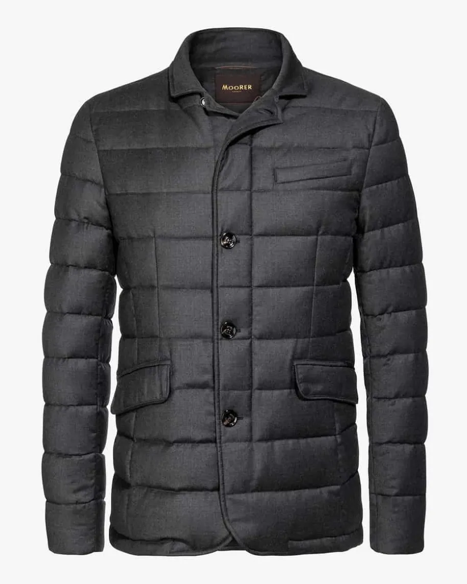 Zayn-L Daunenjacke für Herren von Moorer in Grau. Das Modell aus hochwertigemSchurwoll-Cashmere-Mix begeistert dank hochwertiger Daunen-Füllung mitwärmeisolierender Funktion. Leder-Details am Kragen, eine Logo-Applikation alsauch das stilvolle Steppmuster verleihen dem Gesamtbild den letzten Schliff.