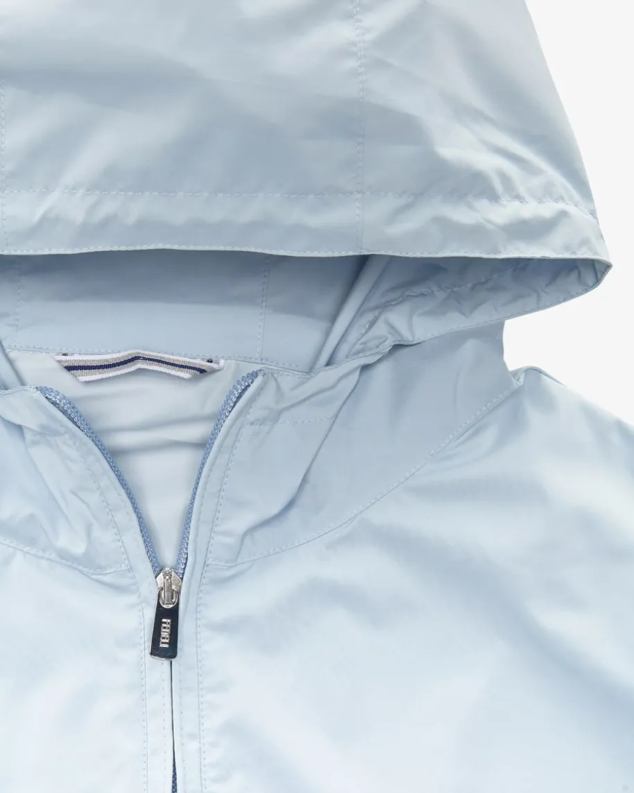 Zoom Jacke für Herren von Fedeli in Hellblau. Das Modell präsentiert sich mitbesonders leichter Material-Qualität mit Airstop-Ausrüstung, die für angenehmenTragekomfort sorgt. Die sportive Silhouette mit elastischen Bündchen und Kapuzerundet den legeren Style gekonnt ab.