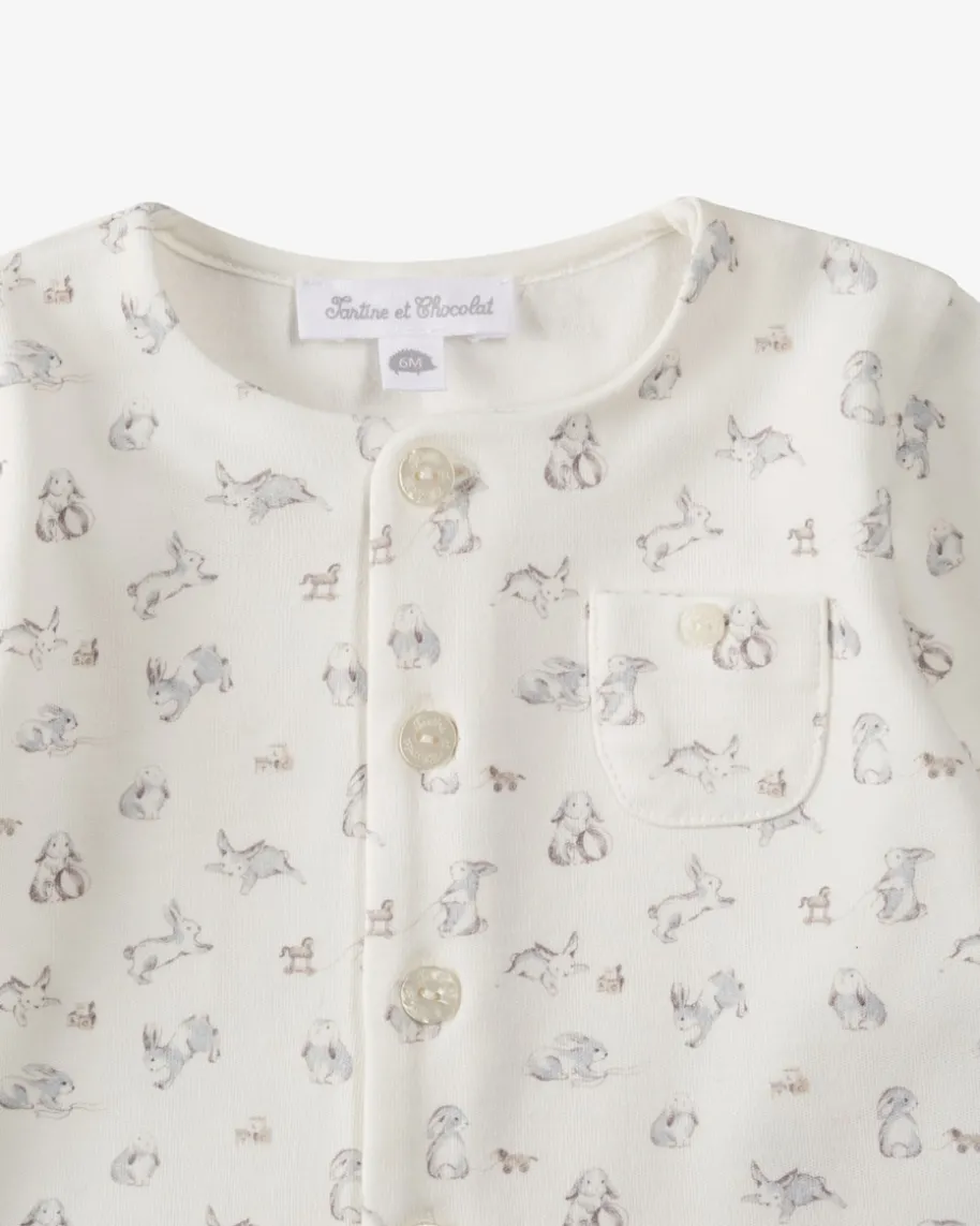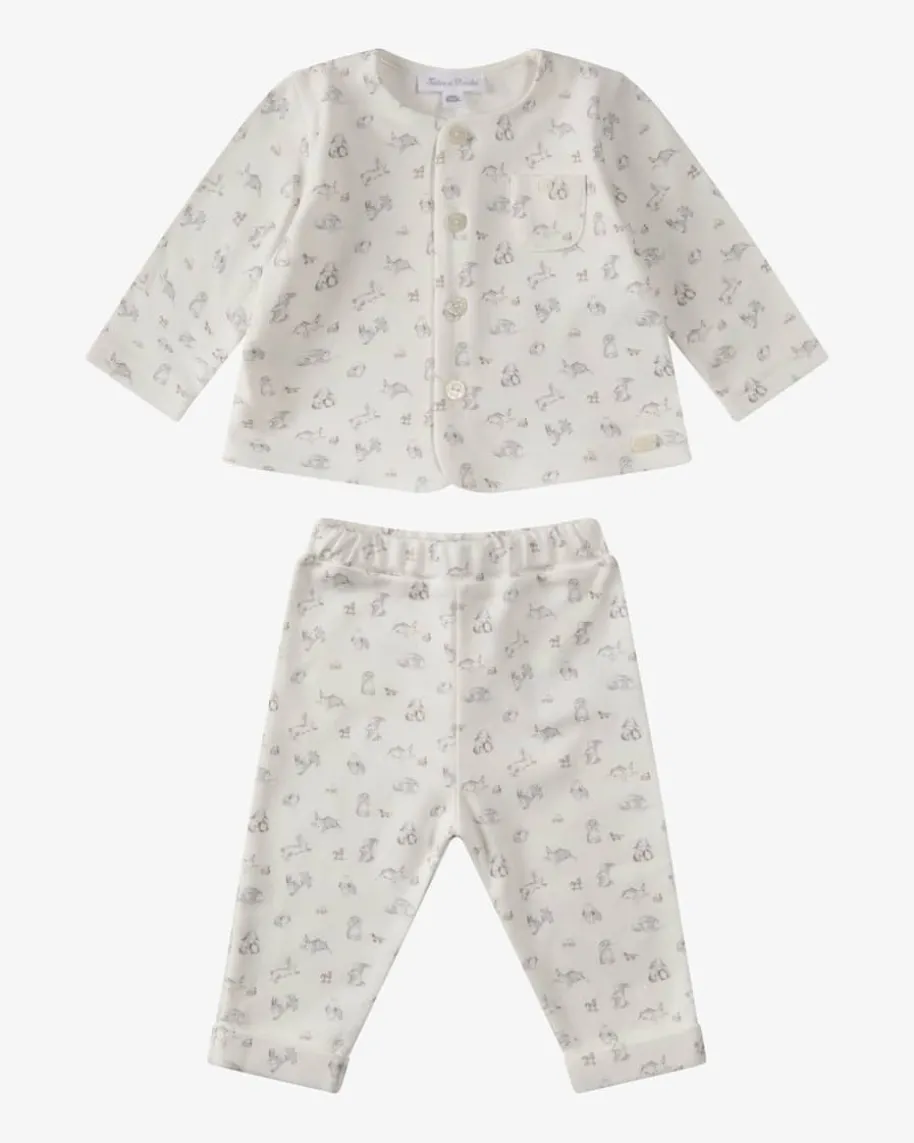 Zweiteiler für Babys von Tartine et Chocolat in Weiß und Hellgrau. Dieses Modellin angenehmer Baumwoll-Qualität überzeugt in niedlichem Häschen-Print, währenddie Knopfleiste des Oberteils und der elastische Bund der Hose das An- undAusziehens Ihres Lieblings erleichtern.